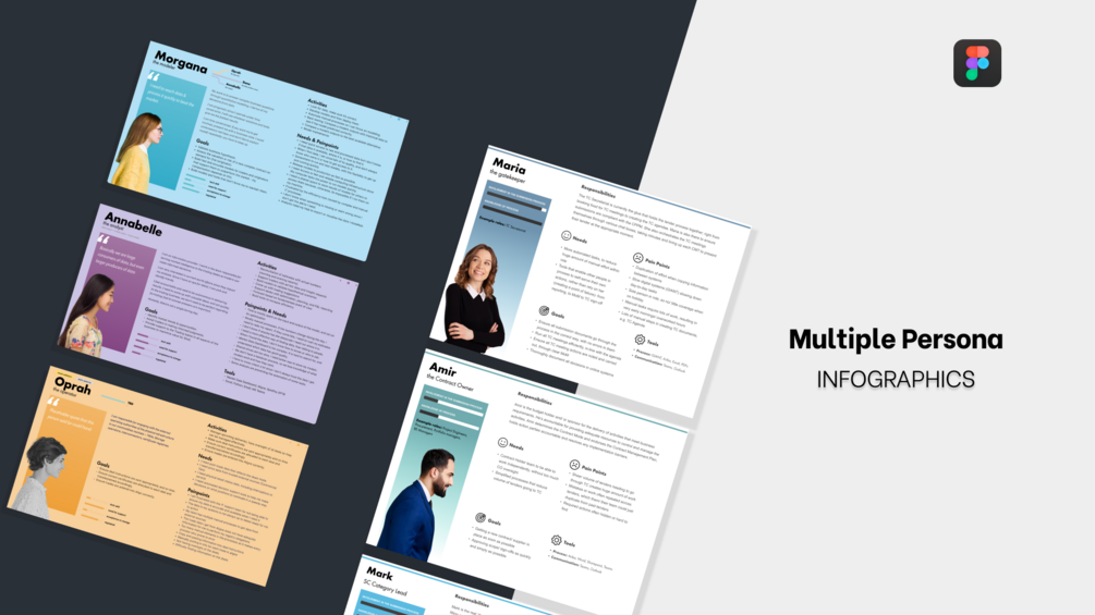 An advanced persona template to create your user personas in Figma made with components, auto layout, colour styles, and a clean structure.